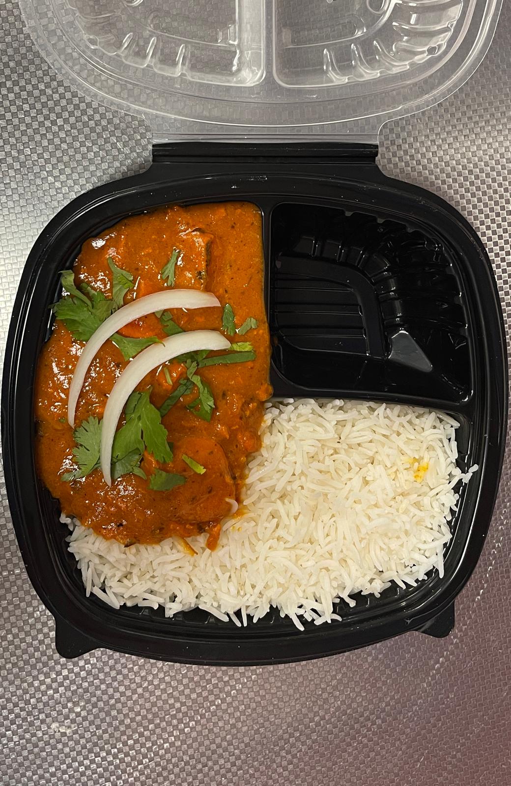 Chicken Tikka Masala | Chicken Curry | Vegetable Korma (Veg) | Saag Panner (Veg) | Tandoori Chicken | Dal Makhni ( Spicy) | Lamb Curry | chana masala | aloo gobi | Yellow Dal | Goat Curry | Chicken Chili (mild) | Aloo Veggie (mild0 vegan | Served with Plain or Garlic Naan, Rice, and Dahi (Yogurt). Choose 1(one) item only.