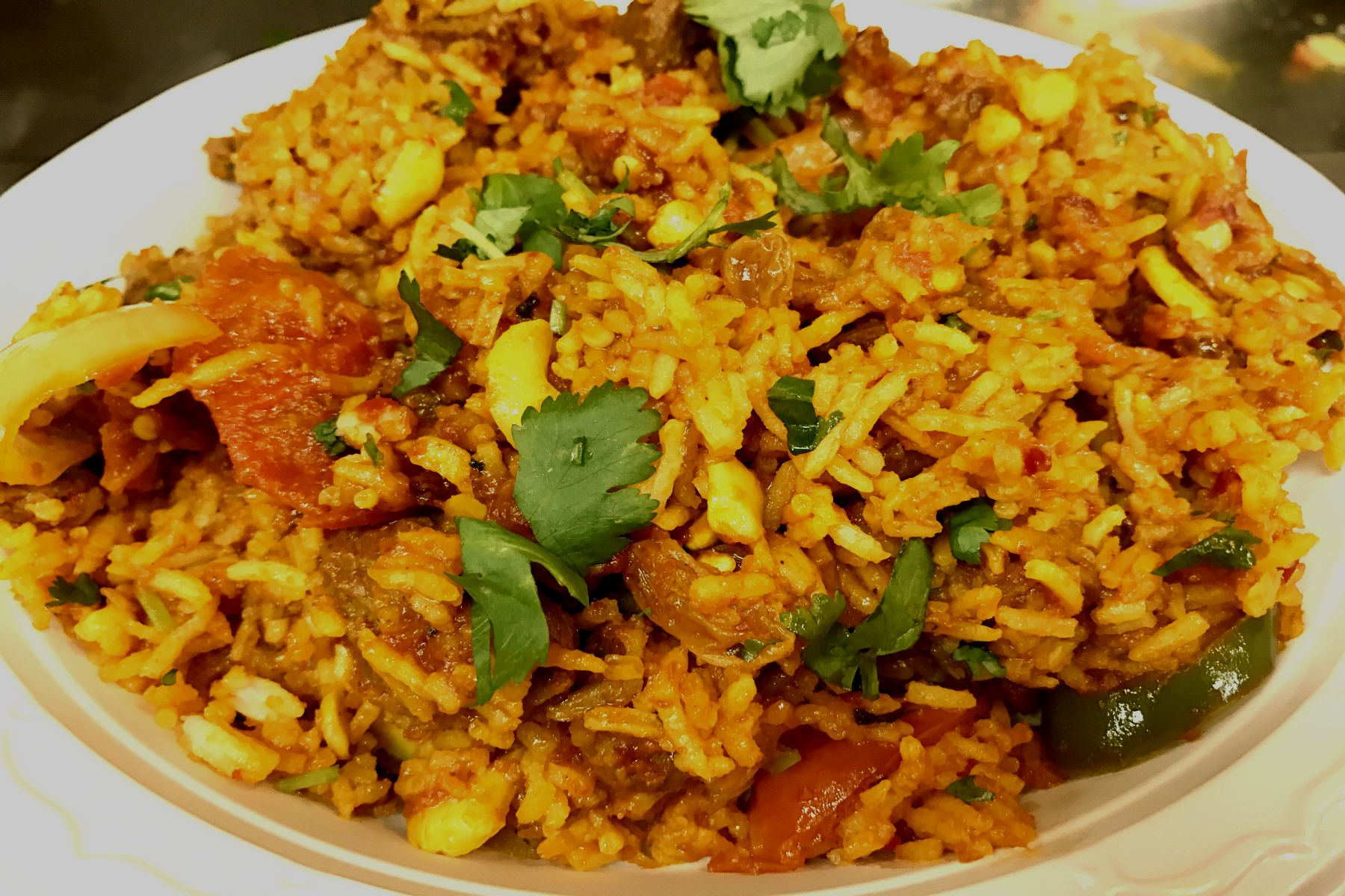 At Naan Cafe, rice specials include biryani dishes cooked with basmati rice, aromatic spices, and your choice of protein.